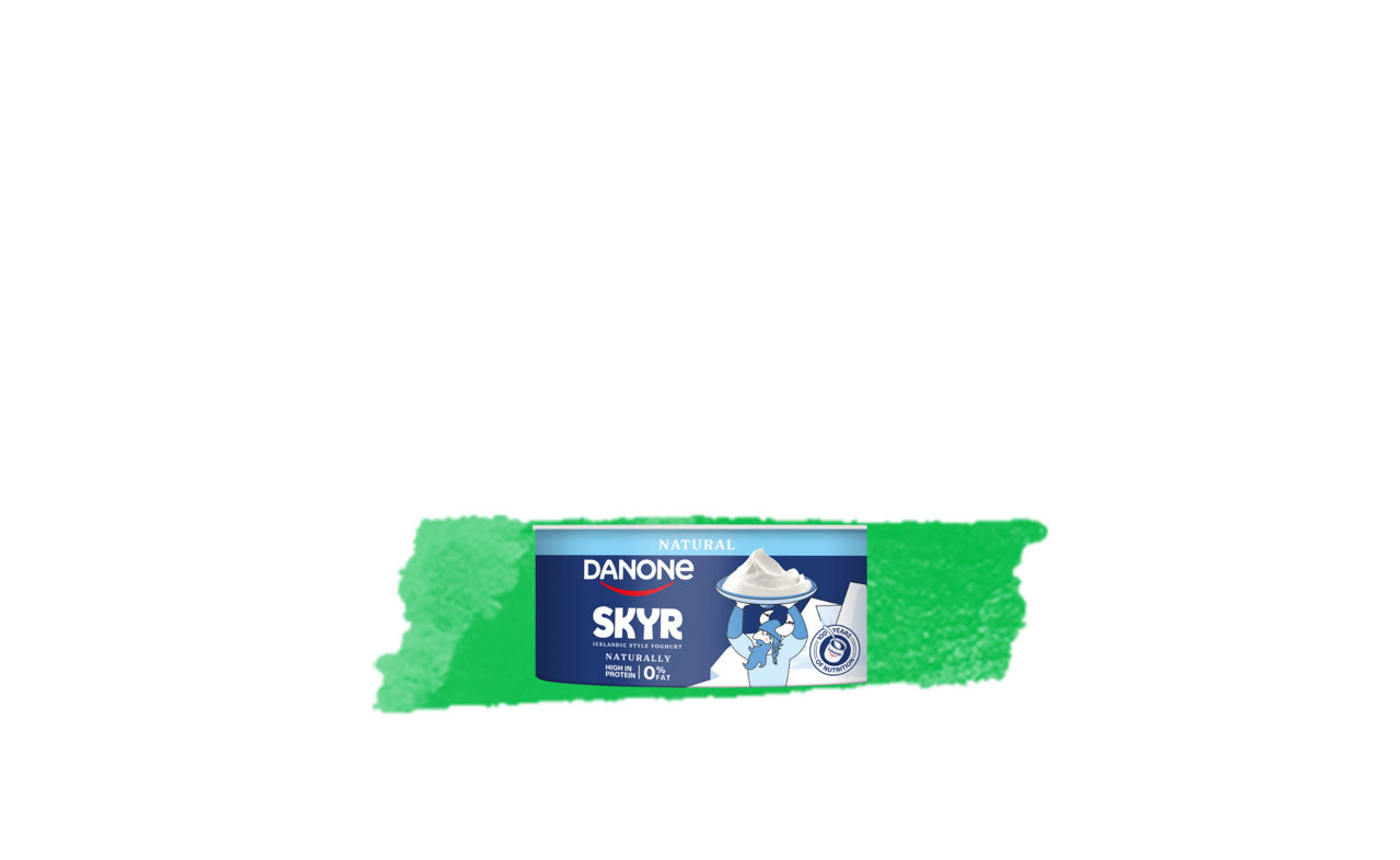 An Icelandic-style yoghurt known for its deliciously thick and creamy texture, Danone Skyr is naturally high in protein, 0% fat and a source of calcium.