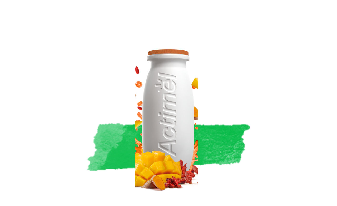 And we removed the plastic label that used to surround our Actimel bottles. Instead, we replaced the labels with embossed data, which will save approximately 135 tonnes of plastic per year.**