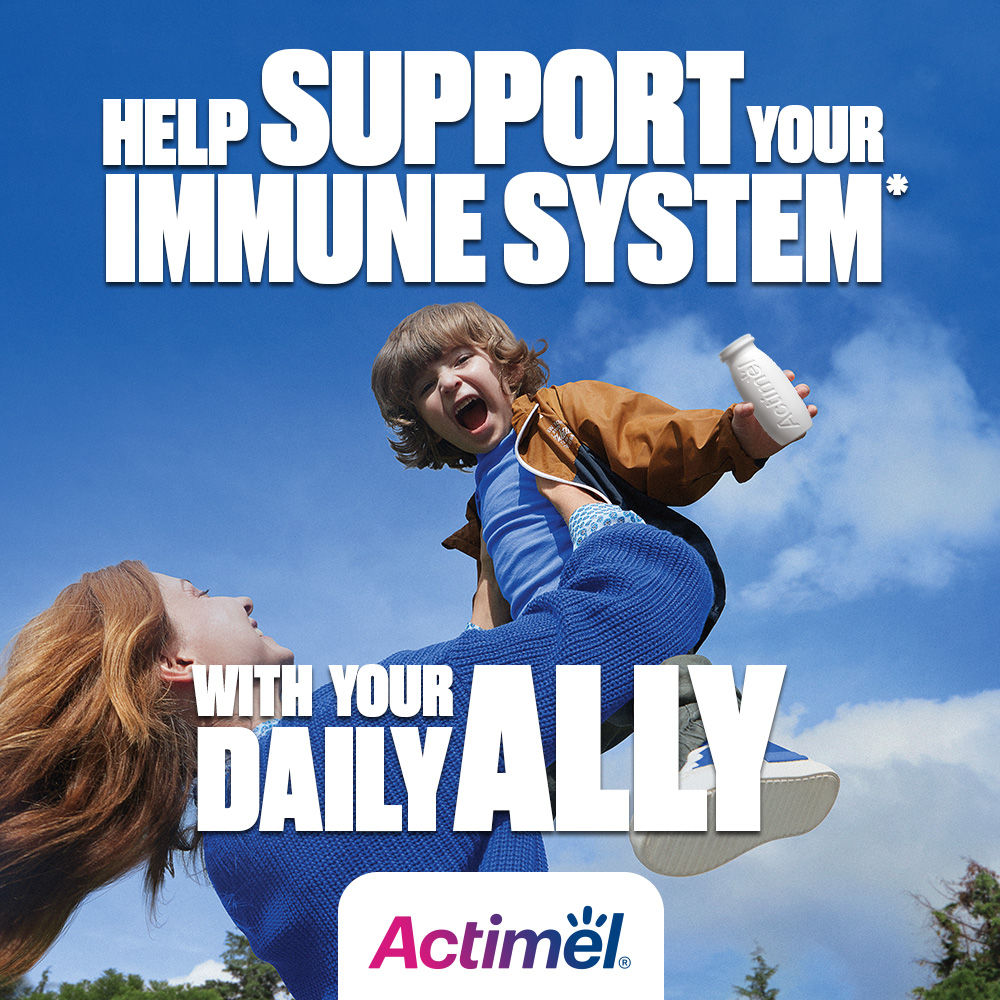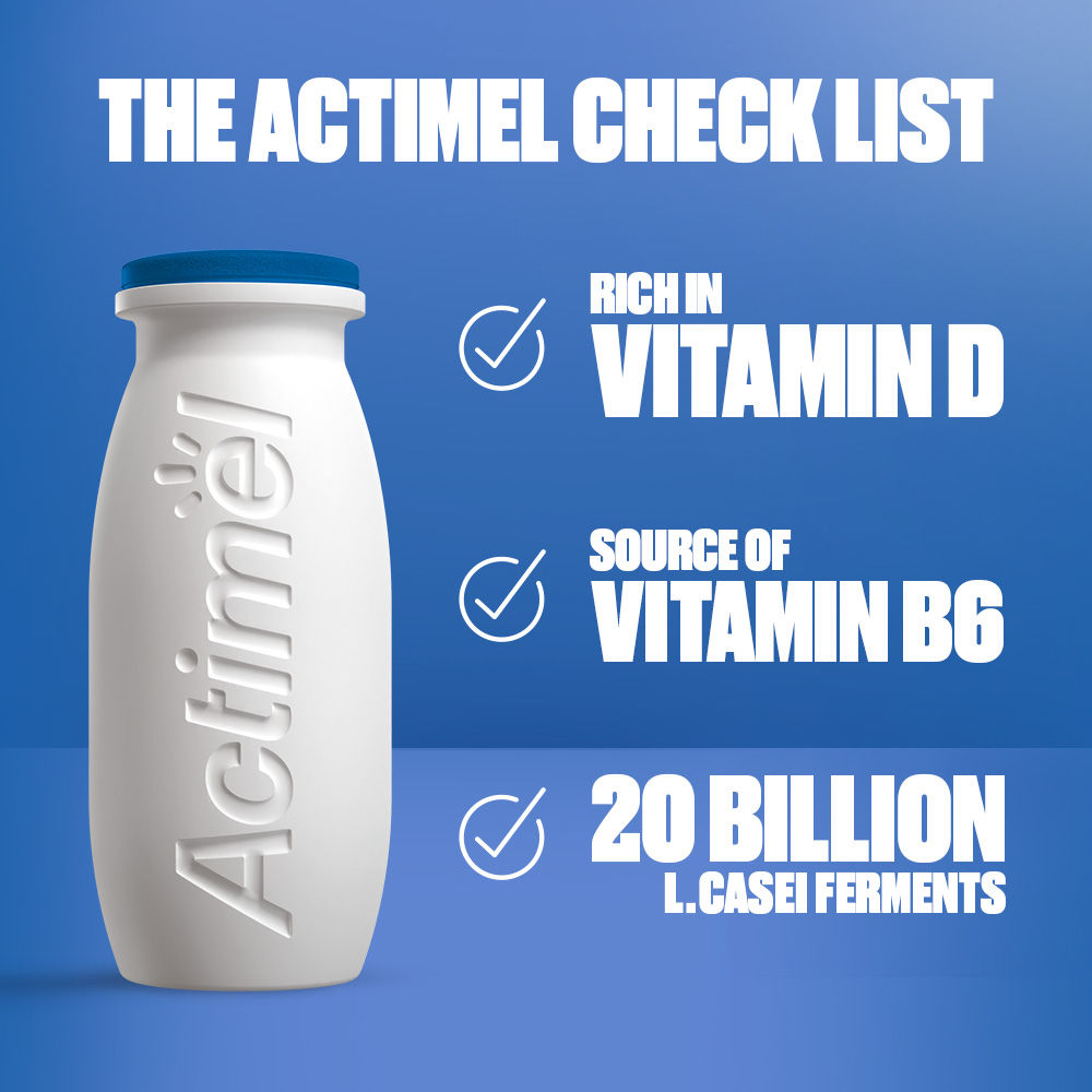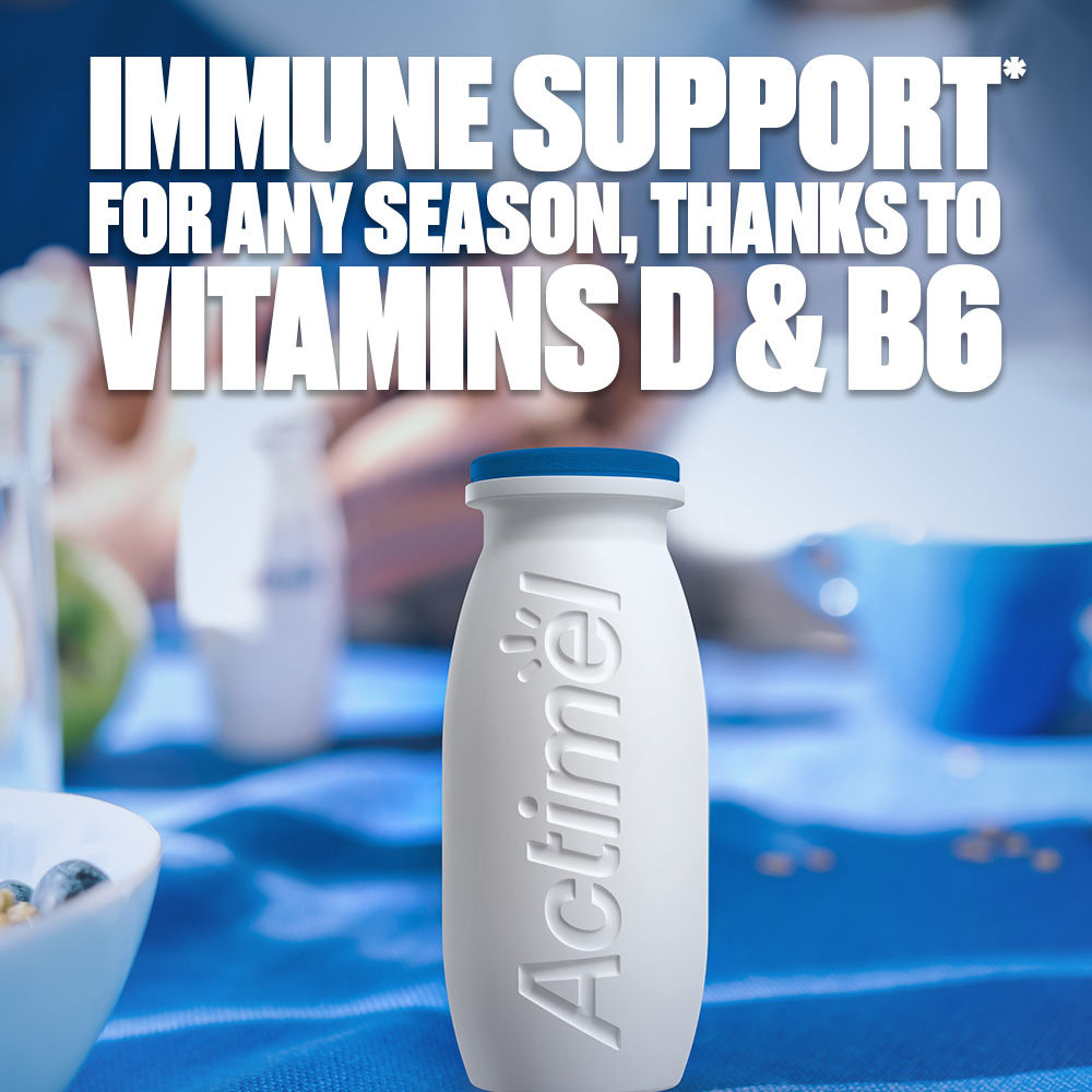 *'Actimel contains vitamins D and B6 which help support the normal function of the immune system. Enjoy as part of a balanced diet and healthy lifestyle.'