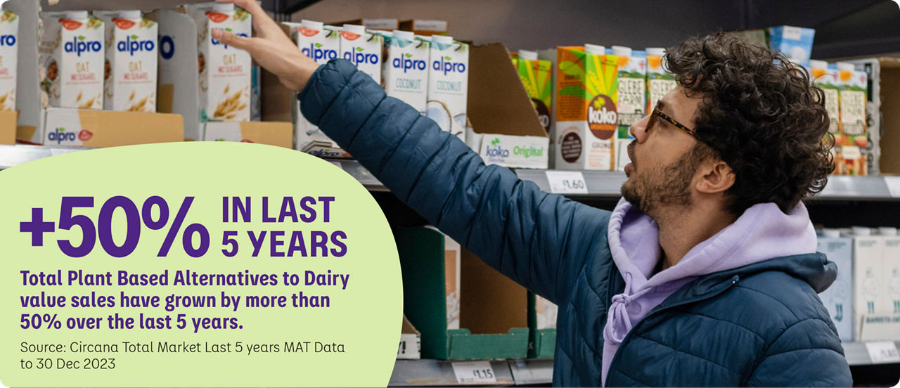 Plant-Based dairy alternatives continue to grow in popularity with 1 in 3 Households now buying Plant-Based drinks.
