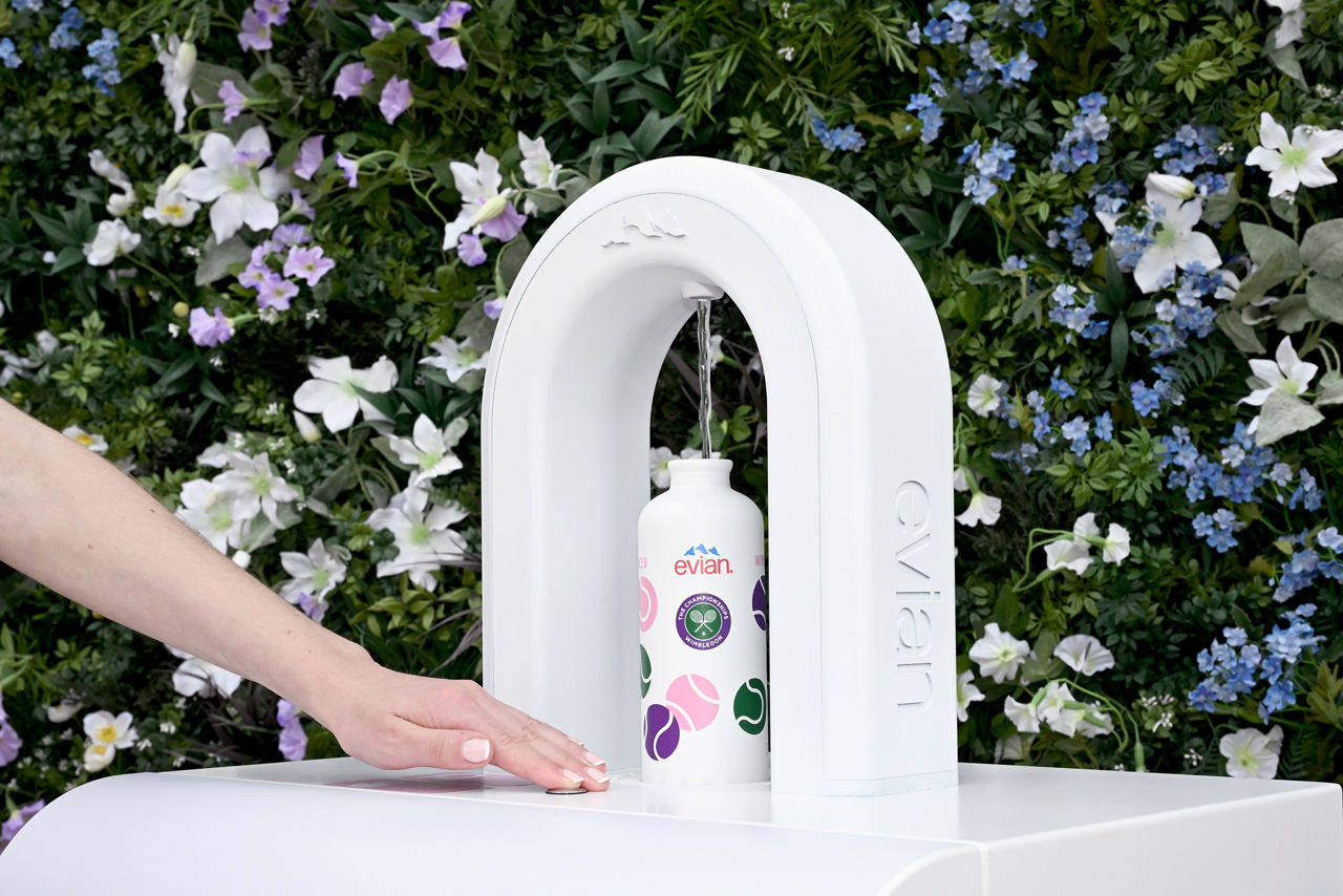 Spectators can purchase evian natural mineral water unlimited refills to stay hydrated throughout their day at Wimbledon.